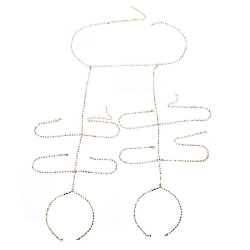 Multilayer Rhinestone Waist Chain Leg Chain Elastic Rope Beautiful Leg Body Chain